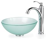 BestPrice Kraus C-GV-101FR-14-12mm-1005CH 14-Inch Frosted Glass Vessel Sink and Riviera Faucet, Chrome