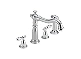 Delta 2256-216 Victorian Two Handle Kitchen Faucet With Spray Chrome 4-Hole 6-to-16-inch installation 9-inch long spout swings 360-degrees for added convenience 1/2-inch IPS connection Washerless ball valve Solid brass construction ensures quality and reliability